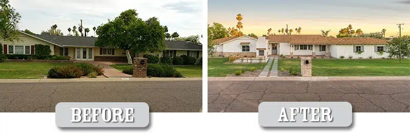 This newly renovated home in Arcadia Proper already had great bones to build on, and our borrower, Ted, went above and beyond with updates. Updates to the house that might not always go noticed, but are appreciated by the new buyers include the new windows, the new HVAC system, updated electrical wiring and AV, updated plumbing features, newly fixed roof with fresh gutters and downspouts, as well as all the updated amenities that a Scottsdale home buyer requires. Updated features that captures the eye of the viewer include the new landscaping, giving the front yard a larger look and feel, as well as allowing more natural light to enter the house during the day. The floors of this home have also been updated with new carpet and wood in some rooms, and tile placed in the bathrooms. The kitchen has been fully updated with new cabinets and countertops, fresh paint, as well as new appliances.